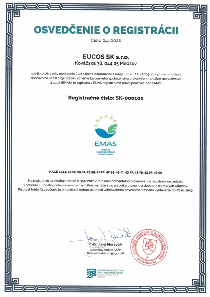Mit dem Besitz des EMAS-Zertifikats bestätigen wir, dass wir bei der Herstellung von Stahlkonstruktionen sowie bei der Umsetzung von Bauwerken strenge Qualitäts- und Sicherheitsstandards mit Respekt gegenüber der Umwelt und den lokalen Gemeinschaften verbinden.